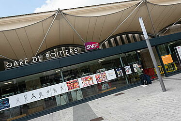Dans la même rubriqueSélectionner dans la même rubriqueSe stationner dans les parkings de PoitiersVélos et mobilités activesTransports en communPartage des voituresProjets et conseil en mobilitéMobilité inclusive et solidaireTransports en communTransports en commun de Grand PoitiersCars gérés par la région Nouvelle-AquitaineTrains et TERPoitiers est desservie par la LGV Sud Europe Atlantique qui relie Poitiers à Paris en 75 min et Poitiers à Bordeaux en 65 min.Gare routièreConsultez le jeu de données en Open Data lié à ce sujet :https://data.grandpoitiers.fr/datasets/offre-de-transport-du-reseau-vitalis