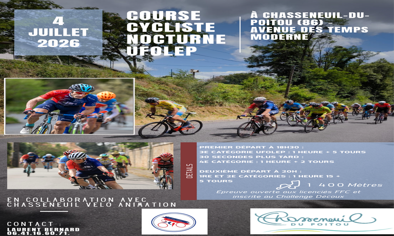 L'Union vélocipédique poitevine organisera la première édition de la nocturne cycliste de la ville de Chasseneuil-du-Poitou.