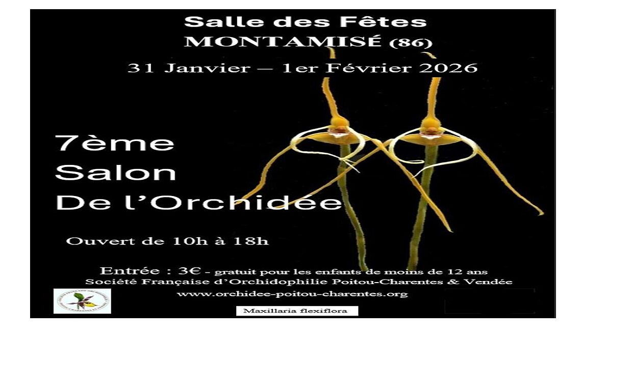 La SFO-PCV organise le 7e Salon de l'Orchidée à la Salle des Fêtes de Montamisé du 31 janvier au 01 février 2026.