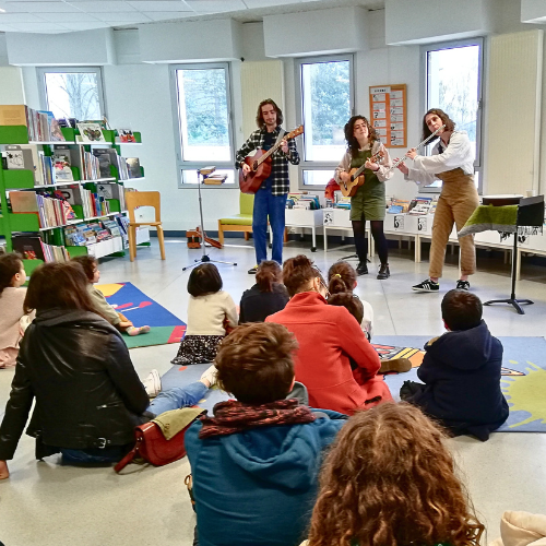 Ils nous réservent quelques surprises, vont nous promener dans la médiathèque et jouent parfois de la musique avec d’étranges instruments !