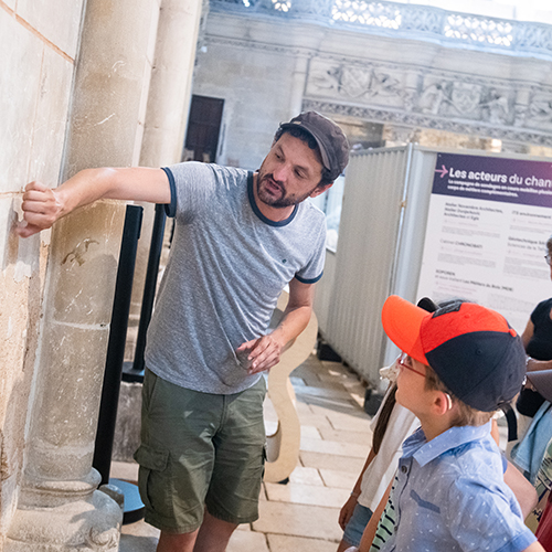 Depuis l’Antiquité, on réutilise des éléments d’anciens bâtiments pour en construire de nouveaux : la muraille gallo-romaine ou le Palais en sont de beaux exemples. Après la visite, les enfants deviennent une équipe de bâtisseurs : ils démontent des “monuments” en carton pour imaginer et reconstruire, à leur échelle, une nouvelle muraille ou une tour inspirée du passé.