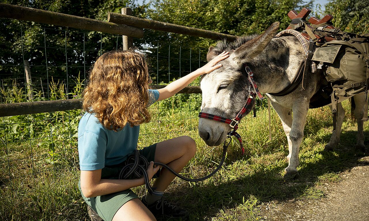 Atelier ludique de découverte de l’âne et de son environnement. Petite balade à pied avec les ânes. Les enfants s’éclatent et les (grands-)parents adorent !