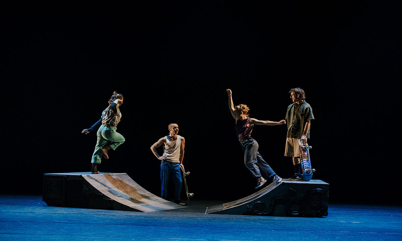 De l’asphalte à la scène, Pauline Sonnic et Nolwenn Ferry invitent deux skateurs à entrer dans la danse. Fiskal, c’est la rencontre d’une jeunesse bretonne qui se construit sur des valeurs communes. Celles d’une discipline qui requiert, pour le skate comme pour la danse, une persévérance à toute épreuve. Et celles d’une pratique qui mobilise le corps dans tous ses états. Unis par ce même langage, les quatre artistes forment une communauté qui danse, roule, s’élance sur les rampes de bois du décor, chute, file à toute vitesse. Et laisse éclater sa joie au coeur d’un nouvel espace de liberté et d’expression, comme un joli pied de nez au système conformiste. C’est de la danse, du skate, les deux à la fois, mais pas seulement. Fiskal nous parle aussi de transmission et d’une manière d’être au monde. Avec l’art de mélanger les univers de la danse contemporaine, des danses populaires, avec celui du skate et des musiques de rue, la compagnie C’hoari fait souffler un vent de résistance joyeuse.