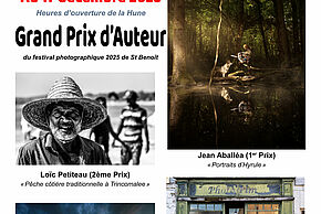 Sont exposées les séries des lauréats du concours du 17e festival photographique de Saint-Benoît : Jean Aballéa, Loïc Petiteau, Alain Hary, Gwenaël Moreno.