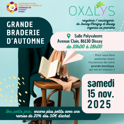 La recyclerie Oxalys sort de ses locaux et organise sa première Grande Braderie d’Automne sur Dissay.
