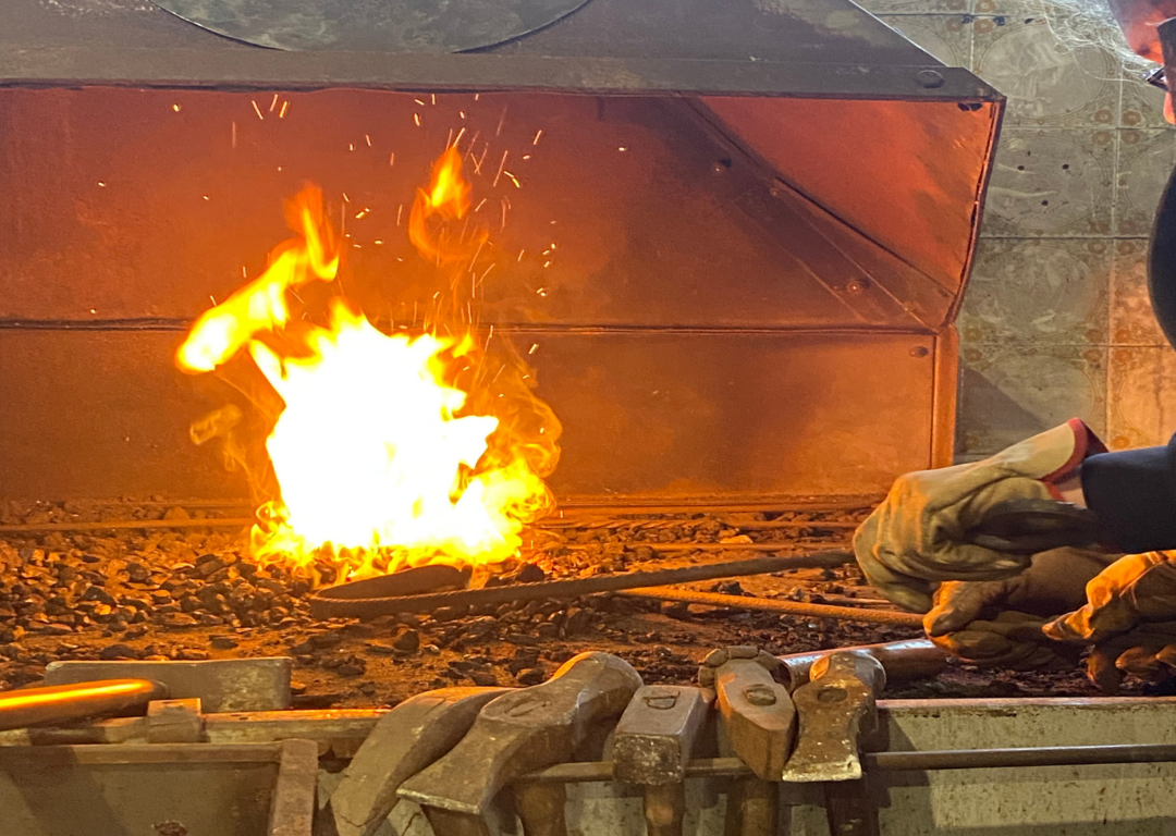 Viens modeler le métal au rythme des coups de marteau sur l'enclume, au sein de La Regratterie lors de nos initiations à la forge !