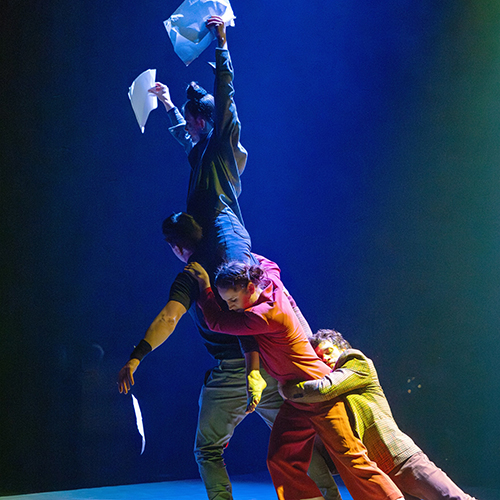 Changement de registre pour le mastodonte du cirque québécois connu pour ses spectacles effrénés (au TAP avec Machine de Cirque en 2023). Kintsugi file le doux et le mélancolique, en référence à cet art japonais de recoller la porcelaine cassée. Les morceaux épars, ce sont ces huit inconnus réunis à un arrêt de bus du bout du monde, en attente d’un départ vers un ailleurs. Cette communauté d’êtres hébétés va apprendre à se réparer, prenant l’acrobatie et l’entraide circassienne comme appuis dans un ballet des affections humaines. Sur le plateau au décor cinématographique, les prouesses d’une troupe rompue à toutes les disciplines du cirque s’éclairent d’une poésie nouvelle. Un spectacle à la beauté suspendue, qui fait de la résilience et de la solidarité ses plus beaux agrès.