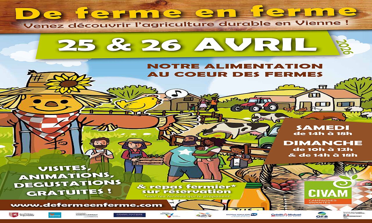 Un week-end à la découverte de l’agriculture durable, sur la thématique de l’Alimentation les 25 et 26 avril 2026.