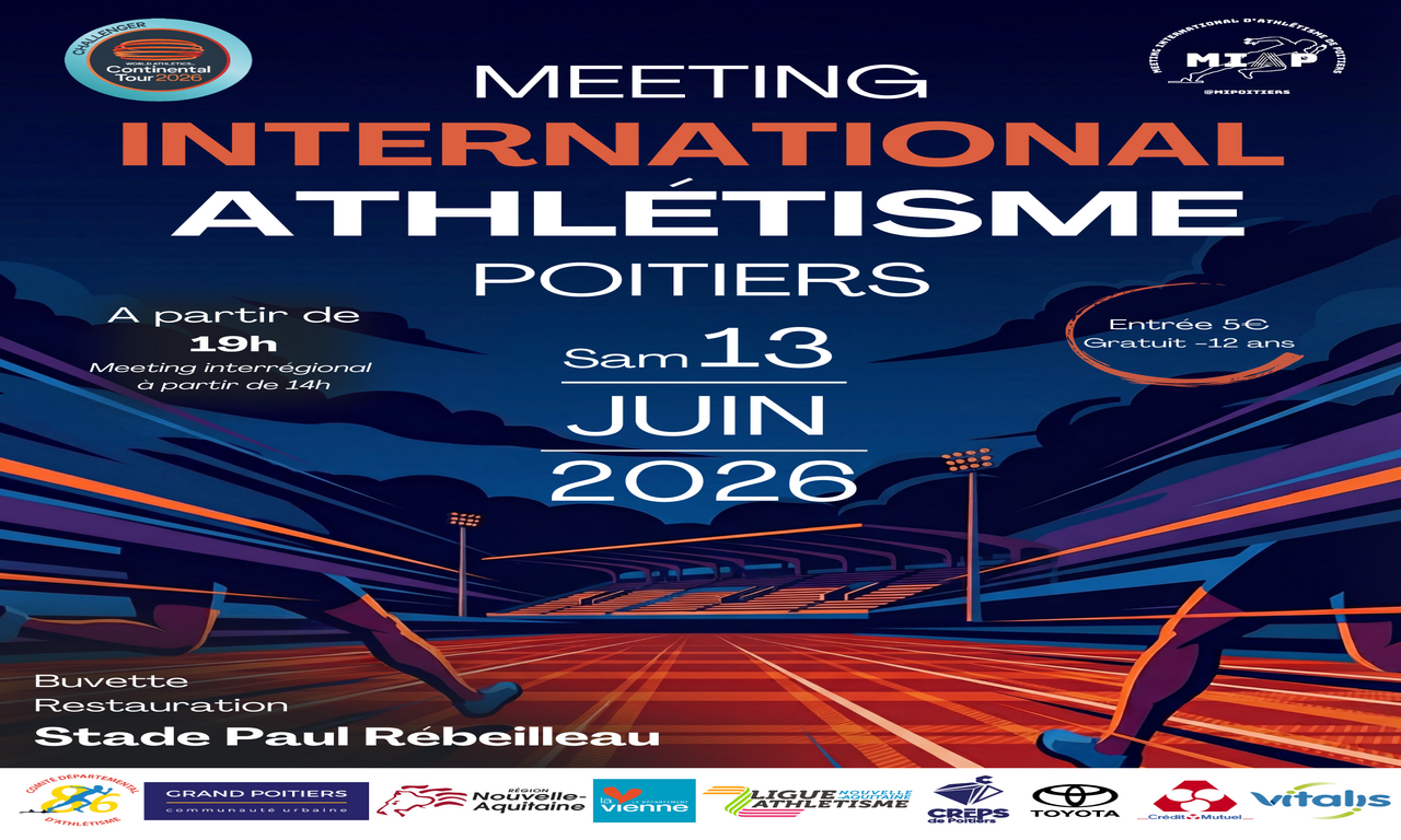 Le Meeting international d'athlétisme de Poitiers est une grande compétition organisée depuis 2017 par le Comité départemental d'athlétisme de la Vienne. Chaque année, elle réunit les meilleurs athlètes français et européens qui viennent chercher des minimas de qualification pour les échéances internationales. Au programme cette année, 12 disciplines de l'athlétisme parmi les courses, les sauts et les lancers.