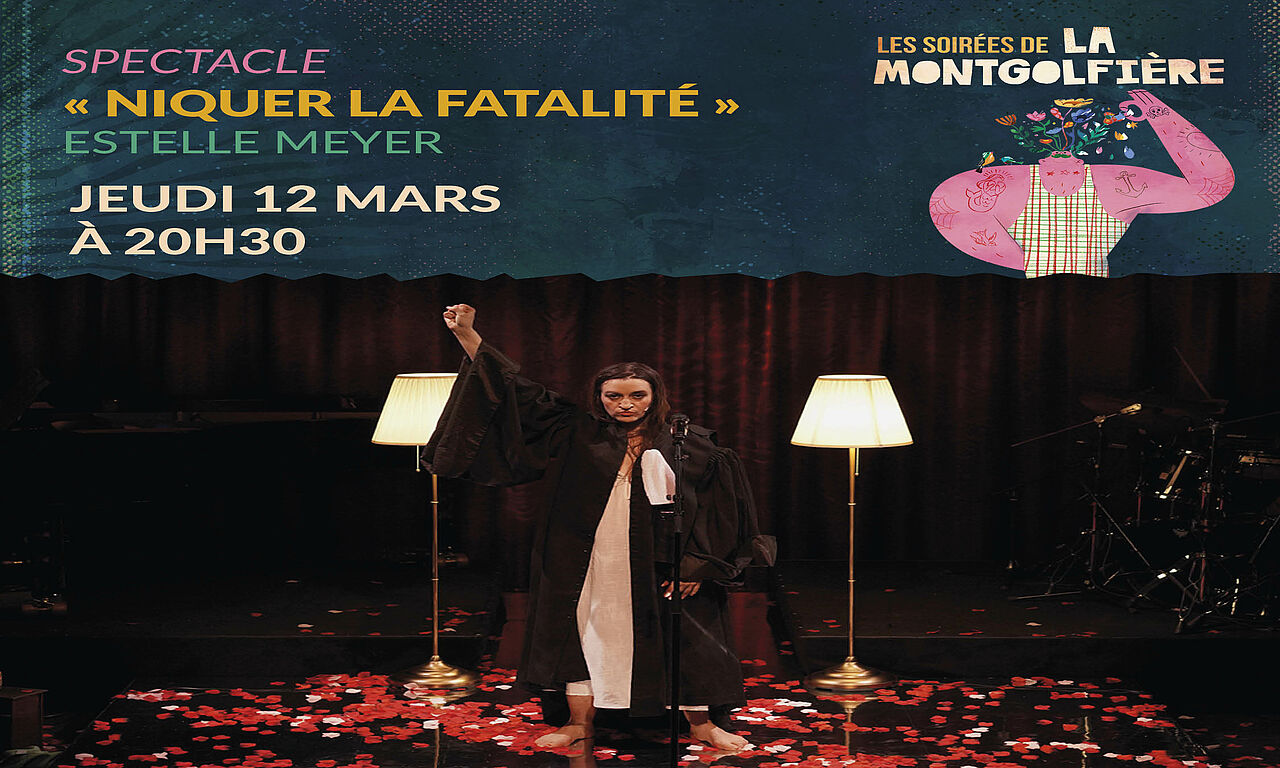 Estelle Meyer, nommée aux Molières pour cette pièce, ne recule devant aucun registre pour niquer cette fatalité d’être née femme dans un monde où le patriarcat règne encore.