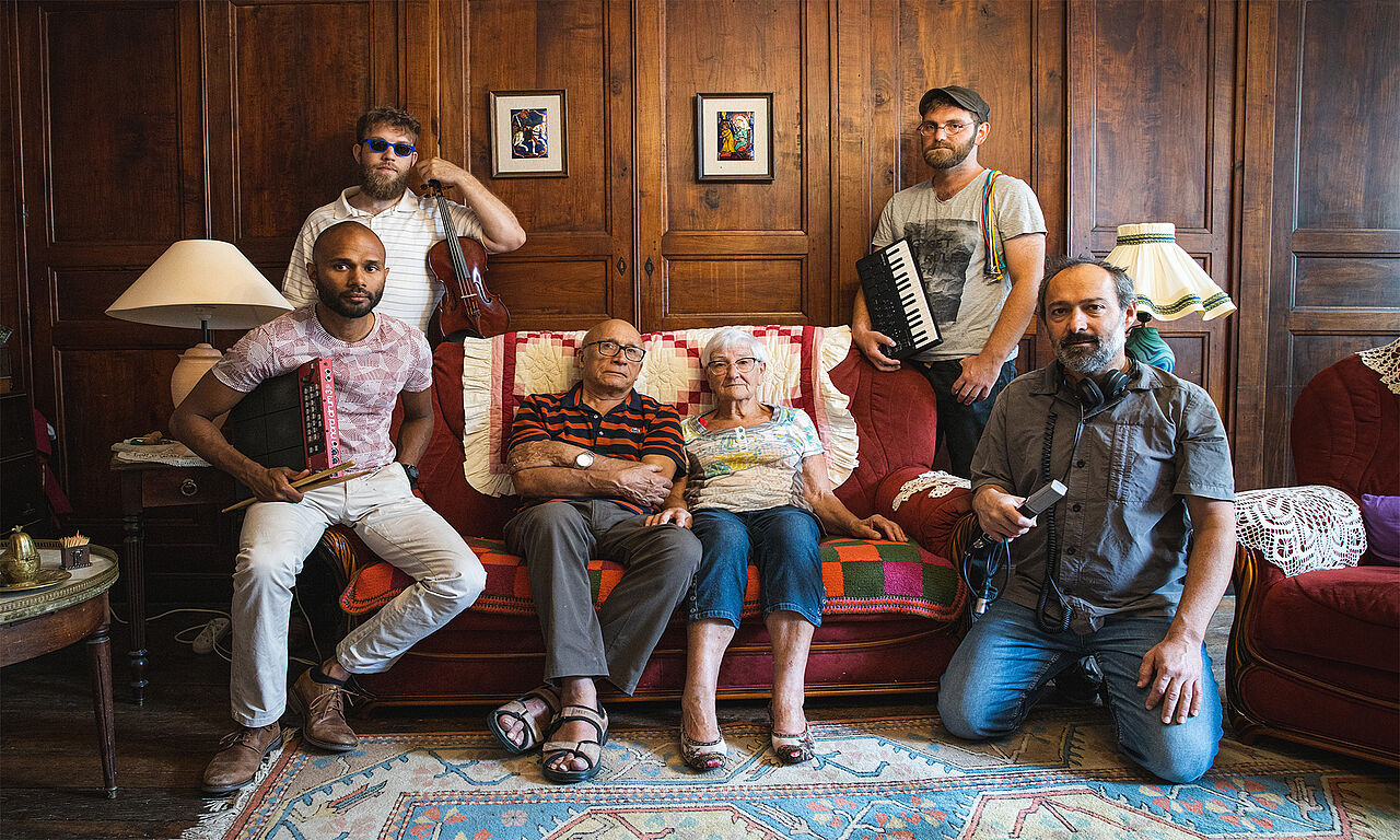 Alain Josué - Batteries, machines / Arnold Courset-Pintout - Synthétiseurs, traitements, samples / Bastien Clochard - Violon, chant, collectages / Michaël Goupilleau - Sonorisation / Alexis Blithikiotis - Lumière et vidéo live