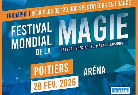 Le28févr.Partager cet articleFacebookTwitterLinkedInMagieFestival mondial de la magieChasseneuil-du-Poitou Arena FuturoscopeDu 20h30