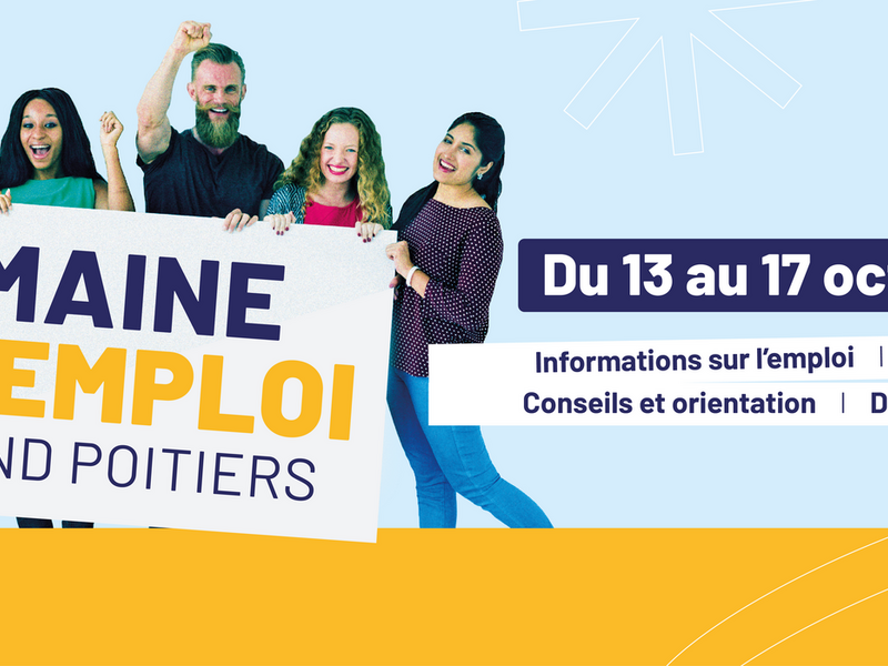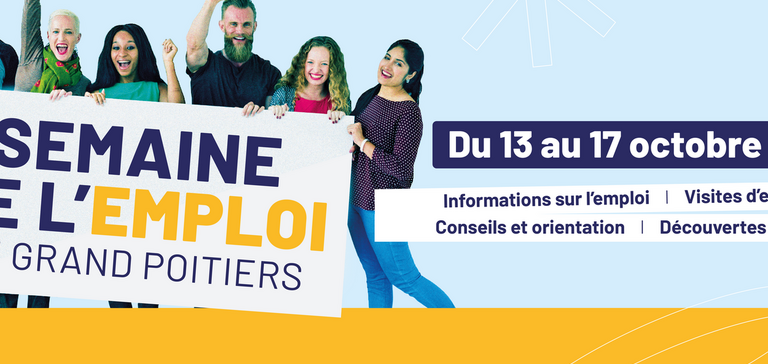 Du 13 au 17 octobre 2025, Grand Poitiers organise sa 5ème édition de la « Semaine de l’emploi » dans 12 communes de la Communauté urbaine : Chauvigny, Dissay, Jardres, Jazeneuil, La Chapelle Moulière, La Puye, Liniers, Lusignan, Poitiers, Pouillé, Saint-Benoît, Sanxay.